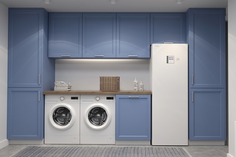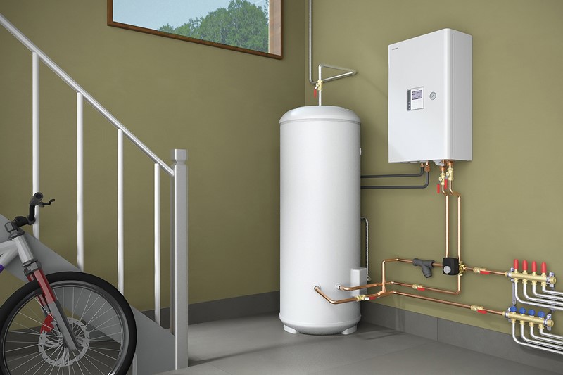 Med vägghängd hydrobox och separat varmvattenberedare som passar i trånga källarutrymmen eller om man har platsbrist.